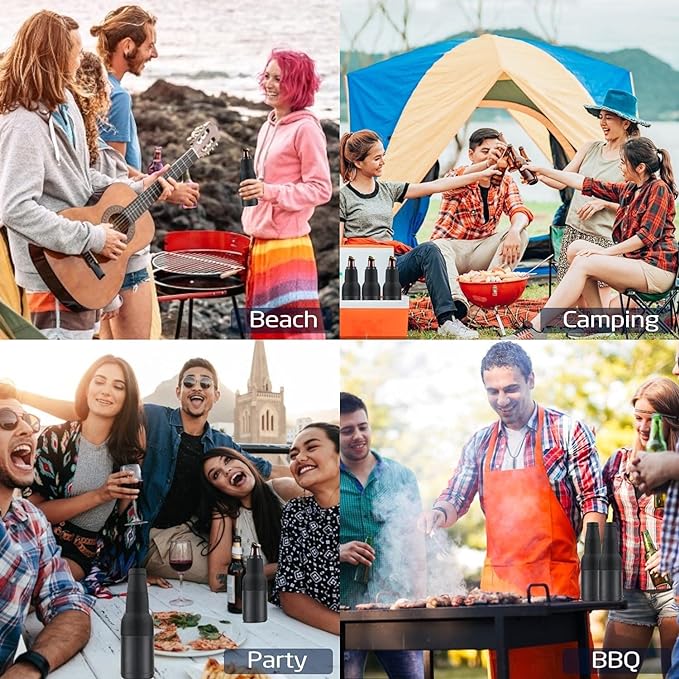 🍺【Fits all 12 oz cans& bottles】 Bottle cooler works with all slim-style 12 oz beer, soda canned drinks, spiked seltzers and energy drinks. With built-in beer bottle opener, it makes your beer drinking more convenient and enjoyable.